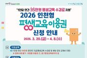 [인천광역신문] 관리자 기자 | 인천광역시는 시민 누구나 차별 없이 평생학습에 참여할 수 있는 환경을 조성하고 시민의 미래 역량 강화를 위해 '2026년 평생교육이용권 지원사업'을 본격 추진한다고 밝혔다. 평생교육이용권 사업은 단순한 교육비 지원을 넘어 시민의 삶에 실질적인 변화를 가져오는 데 중점을 두고 있다. 참여 시민은 경제적 부담을 덜고 원하는 강좌를 자유롭게 선택할 수 있어 자기 계발과 역량 강화를 위한 기회를 폭넓게 누릴 수 있다. 이용권은 NH농협 채움카드에 연 1회, 1인당 35만 원 상당의 포인트를 충전해 지급하는 방식으로 운영되며, 해당 포인트는 평생교육 강좌 수강료와 교재비 결제에 사용할 수 있다. 지원 대상은 ▲19세 이상 성인 중 기초생활수급자 및 차상위계층(일반) ▲65세 이상(노인) ▲30세 이상 성인(AI·디지털 분야) ▲19세 이상 등록(장애인복지법) 장애인이며, 총 6천여 명의 시민에게 폭넓은 학습 기회를 제공한다. 평생학습 교육기관은 전국 3,549개소(인천 183개소)로, 이용자 본인의 학습 수요에 맞춰 원하는 평생학습 강좌를 자유롭게 선택해 수강하