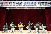 [인천광역신문] 관리자 기자 | 완주문화도시지원센터(센터장 조준모)가 9일 운주면 행정복지센터 2층 다목적강당에서 ‘완주로 퍼지는 문화 한 상 행사’를 열어 지역 어르신과 주민 200여 명이 함께하며 뜻깊은 시간을 보냈다. 이번 행사는 완주문화도시지원센터가 주관하고 운주면 지역사회보장협의체(공동위원장 이선재, 홍성희)가 협력해 마련됐으며, 다양한 공연과 음식 나눔으로 지역사회의 화합을 도모했다. 유희태 완주군수도 참석해 주민들과 함께하며 따뜻한 격려의 메시지를 전했다. 행사에서는 흥겨운 퓨전 국악팀의 ‘국악 한마당’과 합창 공연 ‘우리 완주가 최고’ 등 다채로운 무대가 펼쳐져 어르신과 주민들에게 문화적 즐거움을 선사했다. 특히 공연이 끝난 뒤에는 운주면 지역사회보장협의체에서 정성껏 준비한 비빔밥과 간식이 제공돼 참석자들이 함께 어울리며 따뜻한 교류의 시간을 이어갔다. 조준모 센터장은 “문화 향유의 기회가 부족한 지역 어르신들께 즐거운 공연을 선물할 수 있어 보람을 느낀다”며 “앞으로도 주민이 함께 만들어가는 문화도시 완주를 위해 다양한 프로그램을 발굴하고 추진하겠다”고 말했다. 이선재