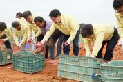 [인천광역신문] 관리자 기자 | 심덕섭 고창군수는 8일 공음면 건동리 일원 1만6528㎡(약 5000평) 규모의 고구마 수확 현장을 방문해 생산 농가를 격려하고 애로사항을 청취했다. 이날 방문에는 심덕섭 고창군수, 조민규 고창군의회 군의장 및 군의원, 농업분야 관계 공무원, 고구마 재배농가, 당산마을 주민 등 30여 명이 함께했다. 고창군은 서늘한 해풍과 풍부한 일조량, 게르마늄과 미네랄이 풍부한 황토지대를 기반으로 고구마 재배에 최적의 조건을 갖춘 전북 최대의 명품 꿀고구마 산지다. 현재 약 600여 농가가 총 1400여㏊ 면적에서 고구마를 재배하고 있다. 김헌동 농가는 지난 4월6일부터 정식을 시작해 5월25일까지 약 70만 평 규모에 국내 인기 품종인 ‘호풍미’, ‘베니하루까’를 심었으며, 앞으로 약 5000톤 가량의 고구마를 수확할 계획이다. 수확된 고구마는 쿠팡, 롯데마트 등 전국 대형 유통채널에 납품될 계획이다. 고창 고구마의 우수한 품질은 이미 시장에서 입증되고 있다. 롯데웰푸드는 고창 고구마를 활용한 빈츠·마가렛트·카스타드·빵빠레·찰떡아이스 등 1