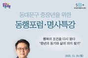 [인천광역신문] 박진 기자 | 서울 동대문구가 중장년의 ‘인생 2막’ 설계를 돕기 위한 공개 포럼과 특강을 연다. 동대문구는 29일 오후 1시 30분 구청 2층 다목적강당에서 ‘동대문50플러스센터 동행포럼·명사특강’을 개최한다고 밝혔다. 2026년 상반기 개관을 앞둔 동대문50플러스센터의 운영 방향을 주민과 공유하고, 지역 여건에 맞는 프로그램을 함께 모색하기 위한 자리다. 이번 행사는 동대문50플러스센터(센터장 이재근) 주관으로 진행되며, 지역 주민 200여 명이 참석할 예정이다. 구는 급격한 산업·일자리 변화 속에서 재취업, 전직, 사회 공헌 등 다양한 경로를 고민하는 중장년층의 수요가 커지고 있는 만큼, 센터 개관 전에 주민 의견을 폭넓게 듣고 협력 기반을 만들겠다는 계획이다. 행사는 2부로 구성된다. 1부 ‘동행포럼’에서는 기조연설과 주제 발표를 시작으로 지정토론, 종합토론, 질의응답이 이어진다. 센터의 역할과 지역 내 연계 방안, 중장년 맞춤형 지원 모델 등 ‘개관 이후 무엇을 어떻게 채울 것인가’가 주요 논의 주제다. 2부에서는 인지심리학자 김경일 교수가 ‘행복의 조건을 다시 묻다–중년의 동기와 삶의 의미 찾기’