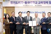 [인천광역신문] 박진 기자 | 경기도의회는 23일 오전 의장 접견실에서 동국대학교와 교육협력 및 학술교류를 위한 업무협약(MOU)을 체결했다. 이날 협약식에는 김진경 의장(더민주, 시흥3)과 고준호 의원(국민의힘·파주1), 김완규 의원(국민의힘·고양12), 이병숙 의원(더민주·수원12), 박호순 의정국장이 참석했다. 동국대학교에서는 윤재웅 총장, 김용현 교무부총장, 김승용 대학원장, 유한림 BMC(바이오메디캠퍼스) 행정처장 등이 함께 자리해 협약의 의의를 더했다. 양 기관은 이번 협약을 계기로 ▲의정 발전을 위한 정보 교류 ▲전문 인재 양성을 위한 교육·연구 지원 ▲도의원 및 의회 직원 대상 대학원 장학금 지원 등 의정 활동 역량 강화를 위한 체계적인 교육 협력에 나서기로 했다. 윤재웅 총장은 “대학의 교육·연구 역량을 공유함으로써 경기도 발전에 기여할 수 있게 되어 뜻깊다”며 “경기도의회와의 지속적인 협력을 통해 실효성 있는 교육 지원을 이어갈 수 있도록 최선을 다하겠다”라고 말했다. 김진경 의장은 “의회에 대한 도민의 기대는 점점 더 복잡해지고 다양화되고 있는 만큼 의회 구성원 모두