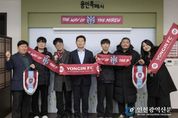 [인천광역신문] 관리자 기자 | 이상일 용인특례시장은 11일 오후 시장실에서 용인FC 공식 서포터즈인 ‘용비어천가’와 용인FC의 K리그2 홈 개막전 준비 상황을 공유하며 소통의 시간을 가졌다고 밝혔다. 이날 이상일 시장은 ‘시민과 함께 성장하는 구단’이라는 비전에 따라 용비어천가 운영진 5명과 소통하며 현장의 목소리를 청취했다. 이 시장은 “구단주이지만 전문가가 아니기에 응원과 지원만 할 뿐 용인FC 선수단 구성에 간섭하지 않겠다고 했고, 단 한 명의 선수도 추천하지 않는 등 제가 한 말을 지켰다”라며 “언론에서 선수단 구성이 잘 됐다고 분석하며 ‘다크호스’로 평가하는 만큼 3월 1일 열릴 홈 개막전이 기대된다”라고 했다. 이 시장은 “시즌 개막을 앞두고 서포터즈 여러분과 직접 만나 준비 상황을 공유하고 현장의 이야기를 들을 수 있어 매우 뜻깊은 시간이었다”라며 “K리그2에서 용인FC가 돌풍을 일으킬 수 있도록 용비어천가의 뜨거운 응원과 지속적인 관심을 부탁한다”라고 했다. 이날 용비어천가는 삼가역-미르스타디움 특화 거리 조성과 홈 경기 조아용 팝업 스토어 설치 등을 요청했다. 이 시장