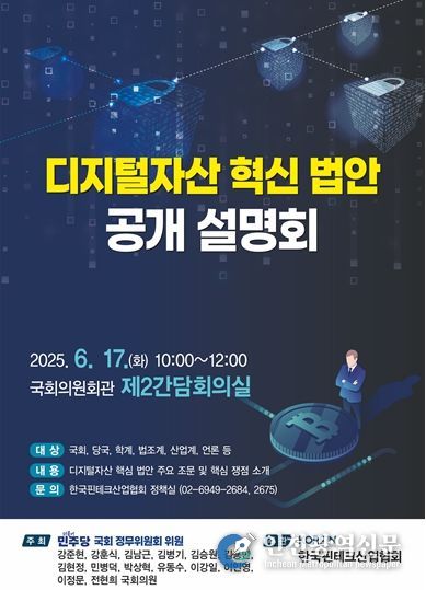 디지털자산 혁신 법안은 디지털자산 사업자의 명확한 분류와 기능별 규율체계 정립, 투자자 보호 및 자금세탁방지 기준 등을 포함한 가상자산이용자보호법의 후속 법안으로, 이번 설명회에서는 주요 조항과 입법 취지, 제정 경과 및 향후 추진 방향이 공개될 예정이다.