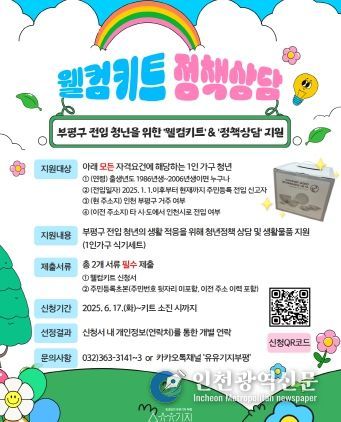 이번 사업은 부평으로 새롭게 이주한 청년들이 지역사회에 안정적으로 정착할 수 있도록 돕기 위해 마련됐다. 초기 생활의 부담을 덜어 주고 다양한 청년 정책 정보를 효과적으로 안내하는 데 도움이 될 것으로 기대된다.