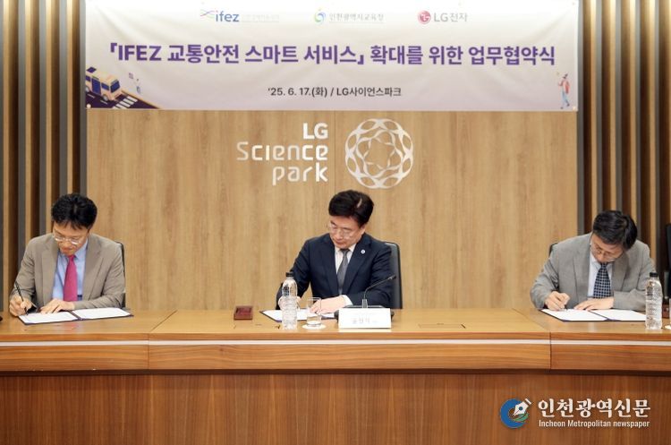 [인천광역신문] 최예준 기자 | 인천경제자유구역청은 17일 오후 LG사이언스파크(서울 마곡동 소재)에서 인천광역시교육청, LG전자와 ‘IFEZ 교통안전 스마트 서비스 확대를 위한 업무협약(MOU)’을 체결했다고 밝혔다.