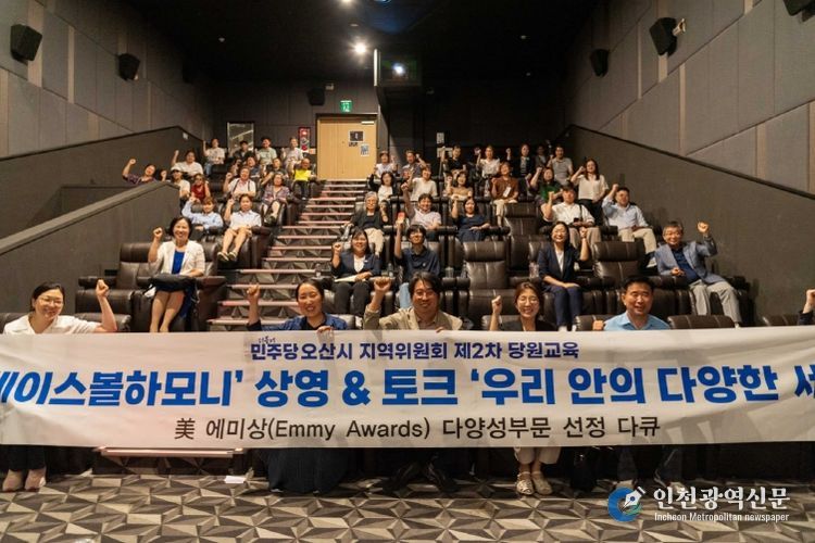 [인천광역신문] 관리자 기자 | 더불어민주당 차지호 국회의원(경기 오산시)은 지난 7월 31일 저녁, 오산중앙CGV에서 더불어민주당 오산시 지역위원회 제2차 당원교육을 개최하고, 미국 에미상(EMMY) 다문화 부문 후보에 오른 다큐멘터리 '베이스볼 하모니'를 연출한 홍지영 감독과 함께 작품을 관람했다고 밝혔다.
