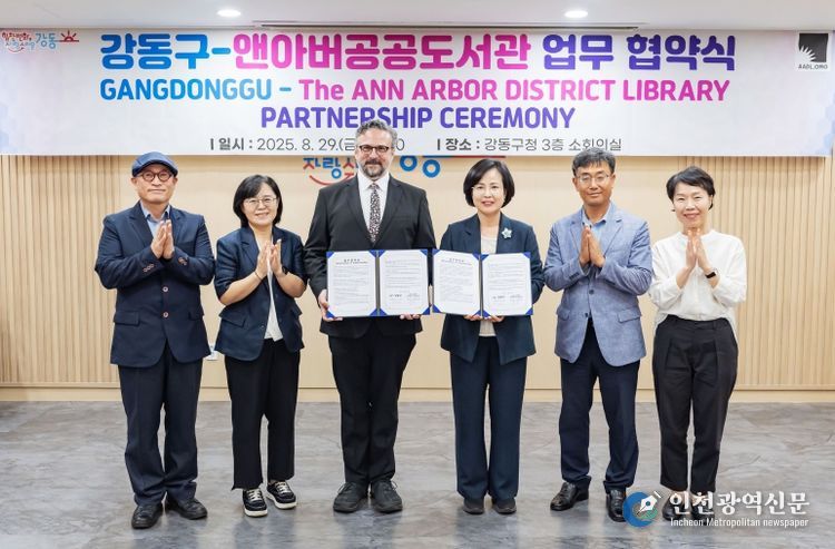[인천광역신문] 최훈 기자 | 강동구는 29일, 미국 미시간주 앤아버 공공도서관(Ann Arbor District Library)과 업무협약을 체결하고, 미국 공공도서관과의 문화 교류를 공식화했다고 밝혔다.