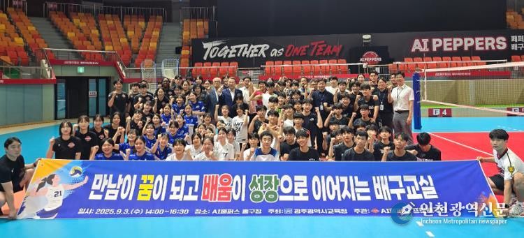 [인천광역신문] 관리자 기자 | 광주시교육청과 페퍼저축은행 AI 페퍼스 배구단은 3일 페퍼 스타디움에서 ‘학교스포츠클럽 배구교실’을 운영했다.