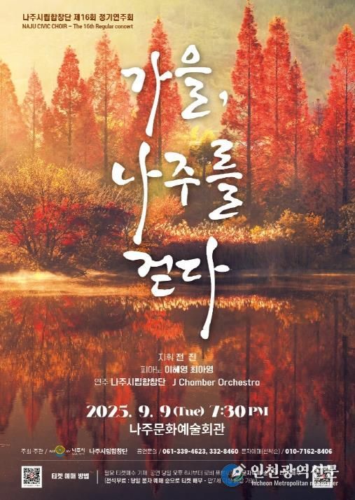 [인천광역신문] 관리자 기자 | 전라남도 나주시가 오는 9일 저녁 7시 30분 나주문화예술회관에서 나주시립합창단 제16회 정기연주회 ‘가을 나주를 걷다’를 개최한다.