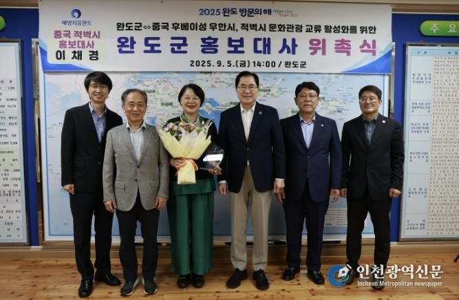 [인천광역신문] 관리자 기자 | 완도군은 지난 9월 5일 중국 후베이성 우한시·적벽시와 문화 관광 교류 활성화를 위해 이채경 중국 후베이성 적벽시의 홍보 대사를 군 홍보 대사로 위촉했다.