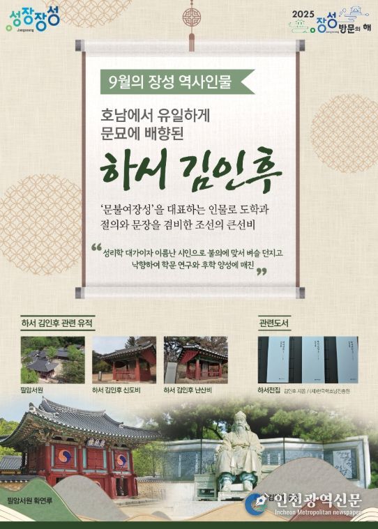 [인천광역신문] 관리자 기자 | 장성군이 9월의 역사 인물로 하서 김인후(1510~1560) 선생을 선정했다.