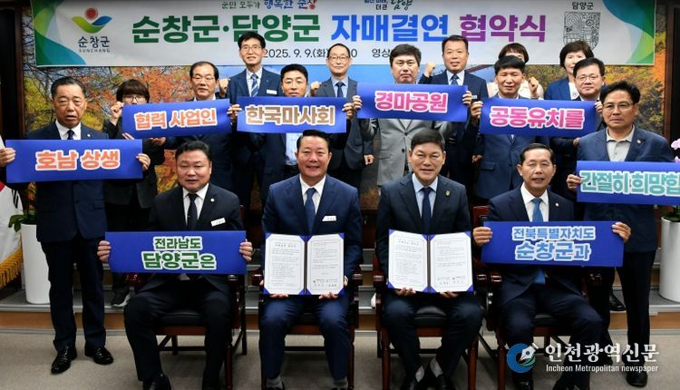 [인천광역신문] 관리자 기자 | 전라남도 담양군과 전북특별자치도 순창군은 9일 순창군 영상회의실에서 자매결연 협약을 맺고 상생발전과 우호교류 강화를 약속했다.