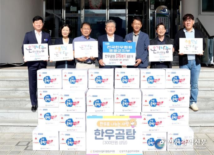 [인천광역신문] 관리자 기자 | 영광군은 지난 10일, 전국한우협회 영광군지부가 추석 명절을 맞아 관내 저소득층을 위해 한우곰탕(1.5kg) 376봉(300만 원 상당)을 기탁했다고 밝혔다.