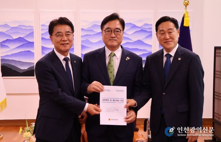 [인천광역신문] 관리자 기자 | 전라남도의회 김태균 의장은 강문성 기획행정위원장과 함께 9월 11일 국회를 방문해 우원식 국회의장을 접견하고, 청년 인구 유출과 지역경제 침체, 지방의원 사직기한 차별 문제 해소 등 현안 해결을 위한 제도 개선과 국회 차원의 지원을 강력히 요청했다.