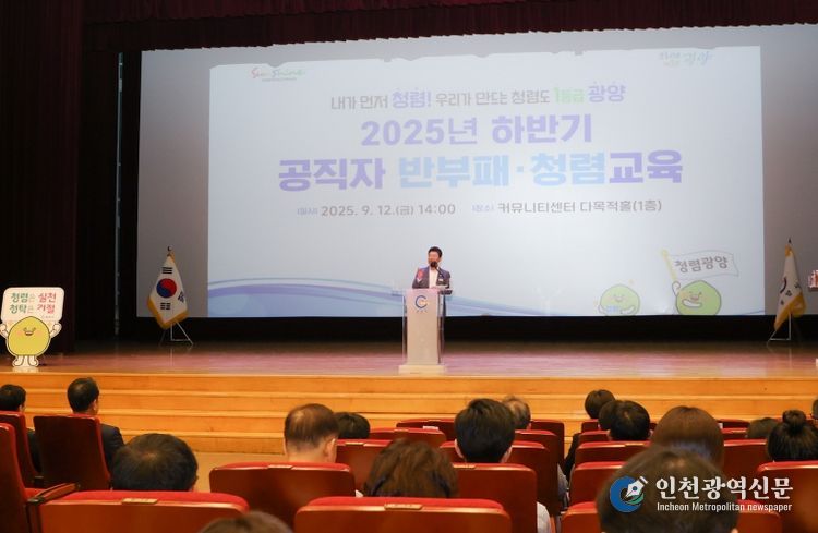 [인천광역신문] 관리자 기자 | 광양시는 9월 12일 커뮤니티센터 다목적홀에서 ‘2025년 하반기 공직자 반부패·청렴교육’을 실시했다고 밝혔다.