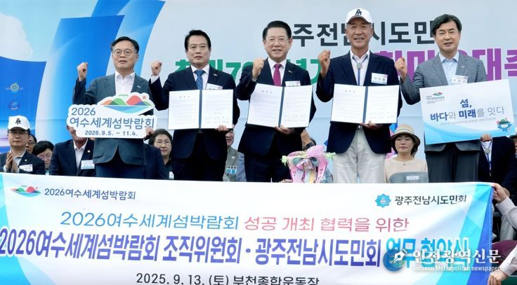 (재)2026여수세계섬박람회조직위원회와 광주전남시도민회는 ▲박람회 성공 개최를 위한 홍보·마케팅 협력 ▲출향민 고향방문 프로그램 운영 지원 ▲정보 교류 및 협력사업 발굴 등을 담은 협약을 하고, 박람회 종료 시까지 긴밀히 협력키로 했다.