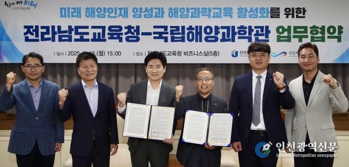 [인천광역신문] 관리자 기자 | 전라남도교육청과 국립해양과학관은 15일 전남교육청에서 ‘미래 해양 인재 양성 및 해양 과학교육 활성화’를 위한 업무협약을 체결했다.