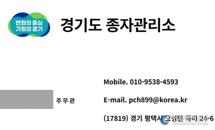 사칭범은 경기도 도정 슬로건이 인쇄된 위조 명함을 사용하고, 허위 주소와 연락처를 기재했으며 실제 근무하지 않는 직원의 이름을 넣었다.