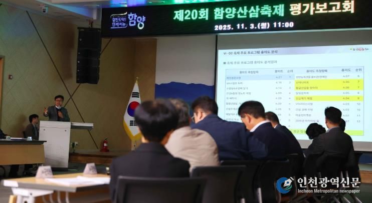 [인천광역신문] 관리자 기자 | 함양군은 11월 3일 군청 대회의실에서 진병영 군수를 비롯한 이현재 산삼축제위원장, 축제 위원, 군의원, 부서장 등 70여 명이 참석한 가운데 ‘2025년 제20회 함양산삼축제 평가보고회’를 개최했다.