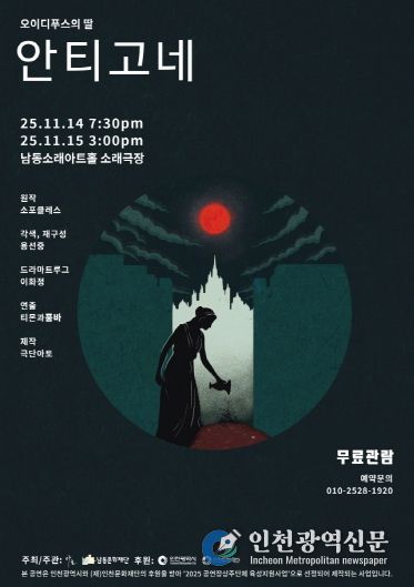 [인천광역신문] 최예준 기자 | 인천시 남동구 남동문화재단은 극단 아토(대표 이종민)의 ‘오이디푸스의 딸 '안티고네'’ 공연이 11월 14~15일 이틀간 남동소래아트홀 소래극장에서 개최된다고 5일 전했다.