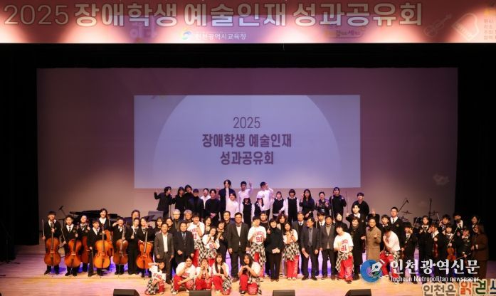 [인천광역신문] 최예준 기자 | 인천광역시교육청은 19일 청라 블루노바홀에서 학생·학부모·교직원·시민 등 350여 명이 참석한 가운데 ‘2025 장애학생 예술인재 성과공유회-예술로, 잇다’를 개최했다.