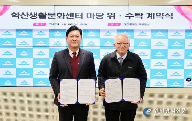 [인천광역신문] 최예준 기자 | 인천 미추홀구는 지난 19일 미추홀학산문화원(원장 정형서)과 학산생활문화센터 ‘마당’의 안정적 운영을 위한 위수탁 계약을 체결했다.
