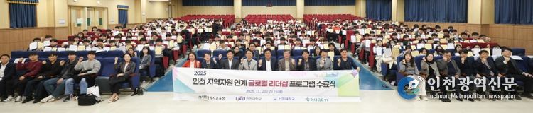 [인천광역신문] 최예준 기자 | 인천광역시교육청은 21일 고등학교 20개교 세계시민교육 동아리 학생과 교원, 학부모, 대학 지도교수, 국제기구 관계자, 하나금융TI 멘토 등 350여 명이 참석한 가운데 ‘2025 인천 지역자원 연계 글로컬 리더십 프로그램’ 수료식을 개최했다.