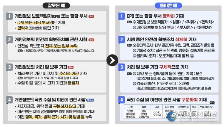 한편, 개인정보위는 개인정보처리자가 보호법에서 정한 절차 및 기준 등을 준수하여 처리방침을 적정하고 투명하게 작성·공개할 수 있도록 지난 4월에는 개인정보 처리방침 작성지침을 개정·배포했다.