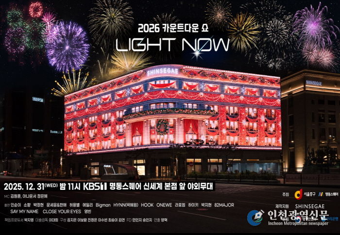서울 중구는 오는 12월 31일 밤 11시부터 신세계백화점 본점 대형 전광판 일대에서 2026년 새해를 맞이하는 '2026 카운트다운 쇼 라이트 나우(LIGHT NOW)'를 개최한다고 밝혔다.