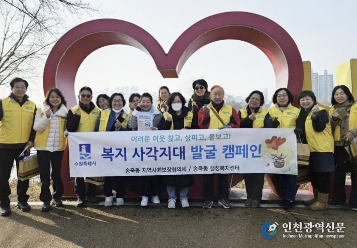 [인천광역신문] 박진 기자 | 수원시 장안구 송죽동 지역사회보장협의체는 지난 17일 복지사각지대 발굴을 위한 주민 참여 캠페인을 실시했다. 이번 캠페인은 도움이 필요함에도 복지 혜택을 충분히 받지 못하고 있는 위기가구를 지역 주민과 함께 발굴하고 촘촘한 복지안전망을 구축하기 위해 마련됐다.