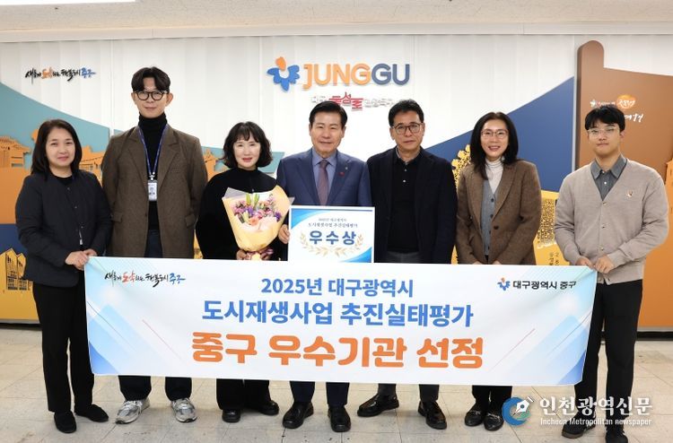 [인천광역신문] 박진 기자 | 대구 중구는 2025년 대구광역시 도시재생사업 추진실태 평가에서 우수기관으로 선정됐다.