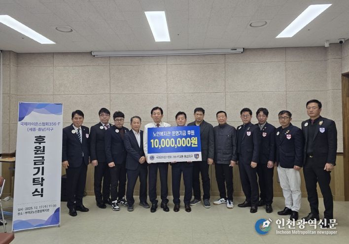 [인천광역신문] 박진 기자 | 부여군노인종합복지관(관장 원종찬)은 지역 어르신 복지 증진을 위해 국제라이온스협회 356-F (세종·충남)지구가 후원금 1천만 원을 기탁했다고 19일 밝혔다.