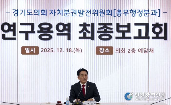 [인천광역신문] 박진 기자 | 경기도의회 자치분권발전위원회 총무행정분과 이은주 위원장(국민의힘, 구리2)은 18일, '집행기관 견제 강화를 위한 의회 내 상임위원회 조직개편 방안 연구' 최종보고회에 참석해 연구용역 결과를 공유하고 논의했다.