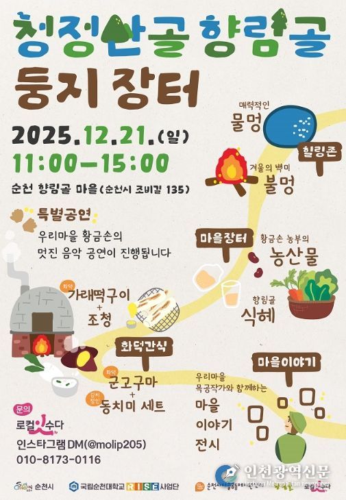 [인천광역신문] 박진 기자 | 순천시는 순천의 대표적인 도심 근교 청정 산골마을인 삼산동 향림골에서 마을에서 생산한 농산물과 마을회관 등을 활용한 '새들이 찾아드는 마을: 청정산골 향림골 둥지장터'를 오는 21일 오전 11시부터 오후 3시까지 개최한다고 밝혔다.