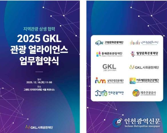 [인천광역신문] 박진 기자 | 여주세종문화관광재단은 지난 12월 16일 GKL 사회공헌재단이 주관한 ‘GKL 관광 얼라이언스 업무협약식’에 참석하여, 전국 8개 지역관광 전담기관과 함께 문화·관광 분야 공익사업 협력을 위한 업무협약을 체결했다고 밝혔다.