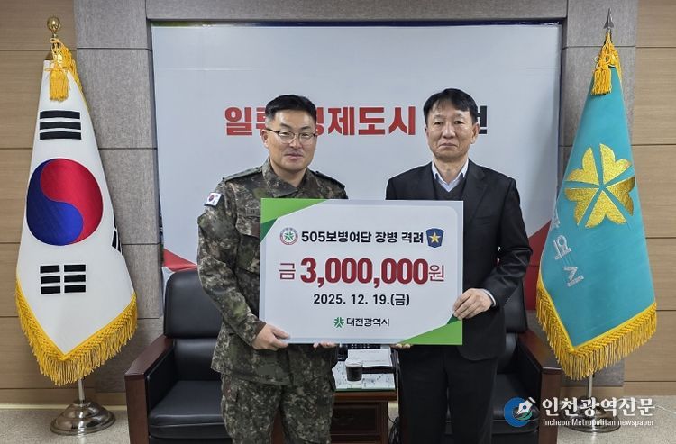 [인천광역신문] 박진 기자 | 대전시는 19일 오전, 제1970부대에 ‘25년 비상대비훈련을 성공적으로 마친 국군 장병의 노고를 격려하고 국가안보 헌신에 감사의 뜻을 담아 위문금을 전달했다.