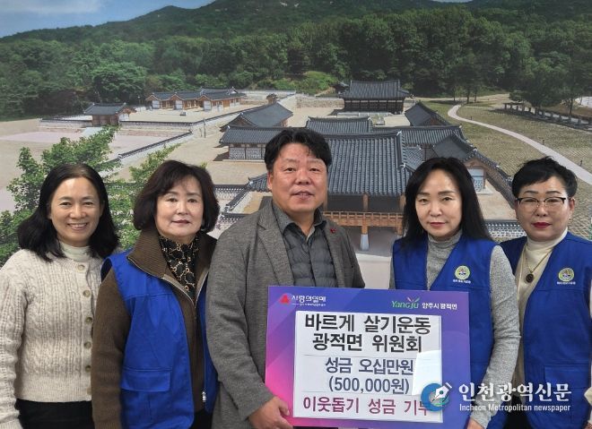 이번 성금은 바르게살기운동 광적면위원회가 ‘양주 회암사지 왕실축제’ 먹거리 판매 부스를 운영해 마련한 수익금으로 마련됐다.