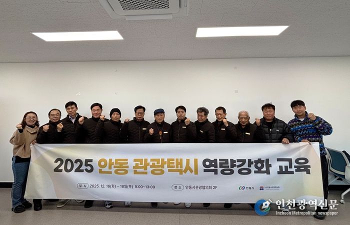 [인천광역신문] 박진 기자 | (사)안동시관광협의회는 지난 18일 안동관광커뮤니티센터에서 ‘2025 안동관광택시 종사자 역량강화 교육’ 수료식을 성황리에 마쳤다고 밝혔다.