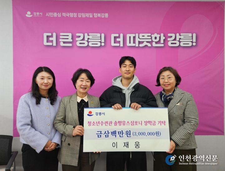 [인천광역신문] 박진 기자 | 강릉 출신 대학생 작곡가 이재웅(24세) 씨가 지난 19일 지역 청소년의 예술 활동을 지원하기 위해 강릉시청소년수련관이 운영하는 솔향유스심포니 오케스트라에 기탁금 300만 원을 전달했다.