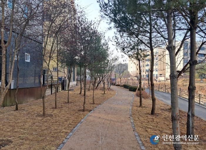 [인천광역신문] 박진 기자 | 의정부시는 도심 속에서 시민들이 자연과 함께 걷고 쉴 수 있도록 민락동 820-6번지 녹지대에 오솔길(총 200m)과 쉼터로 이뤄진 ‘감성쉼터’를 조성했다.