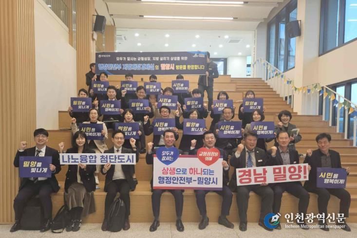 [인천광역신문] 박진 기자 | 밀양시는 행정안전부 주관의 ‘지방살리기 상생 자매결연 우수사례’ 공모에서 우수상에 선정돼 특별교부세 8천만원을 확보했다.