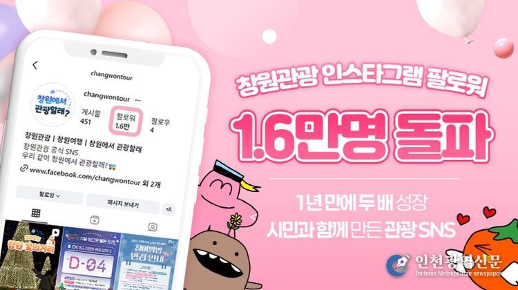 [인천광역신문] 박진 기자 | 창원특례시는 창원관광 공식 인스타그램 채널이 올해 말 기준 팔로워 수 1만 6,000명을 돌파하며, 지난해 연말 약 9천 명 대비 1년 만에 두 배 가까운 성장을 기록했다고 22일 밝혔다.