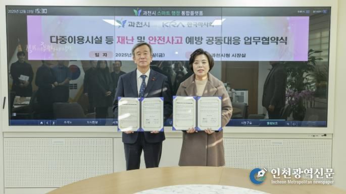 [인천광역신문] 박진 기자 | 과천시는 지난 19일 한국마사회와 ‘재난 안전 강화를 위한 공동대응’ 업무협약을 체결했다고 22일 밝혔다. 이번 협약은 재난 발생 시 신속한 대응 체계를 마련하고, 지역사회 안전 관리 역량을 높이기 위해 추진됐다.