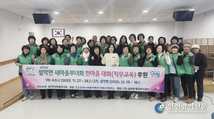 [인천광역신문] 박진 기자 | 가평군 설악면 새마을부녀회는 최근 행정복지센터에서 ‘설악면 새마을부녀회 한마음 대회’를 열고 2025년 봉사활동을 모두 마쳤다. 이번 행사는 한국수력원자력㈜ 청평수력발전소의 후원으로 마련됐다.
