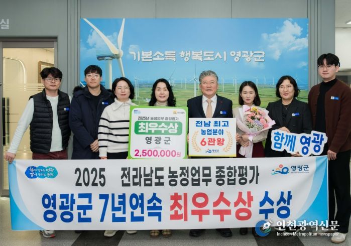 [인천광역신문] 박진 기자 | 영광군은 전라남도 2025년 농정업무 종합평가에서 7년 연속 최우수상을 수상하며, 농정 전반에서의 균형 있는 성과로 도내 최고 수준의 농정 역량을 다시 한번 입증했다.