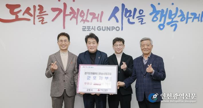 이에 하은호 군포시장은 “어려운 시기에도 지역 이웃을 위한 따뜻한 나눔을 실천해 주신 관내 마을버스운송사업조합에 깊이 감사드린다”며 “기부금은 도움이 필요한 분들께 소중히 전달하겠다”고 말했다.
