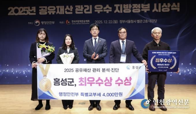 [인천광역신문] 박진 기자 | 홍성군은 행정안전부가 실시한 ‘2025년 공유재산 관리·분석 진단 평가’에서 최우수 자치단체에 선정되며 특별교부세 4천만원의 인센티브를 지원받게 됐다.