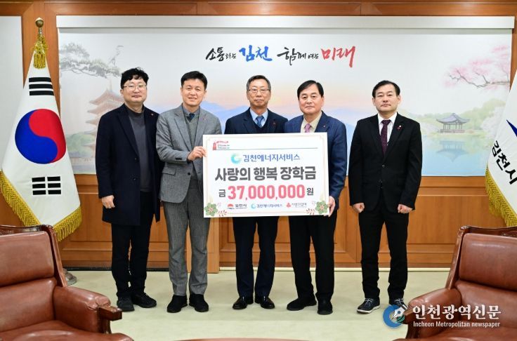 [인천광역신문] 박진 기자 | 김천시는 지난 19일, 김천에너지서비스㈜(대표 박영진)로부터 관내 저소득 중·고등학생을 위한 장학금 3,700만 원을 전달받았다고 밝혔다.