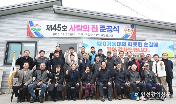 [인천광역신문] 박진 기자 | 거창군 120자원봉사대(회장 성기환)는 지난 20일, 가조면 장기리 신천마을에서 '제45호 사랑의 집' 준공식을 열고, 주거 취약계층을 위한 나눔 활동을 실천했다.