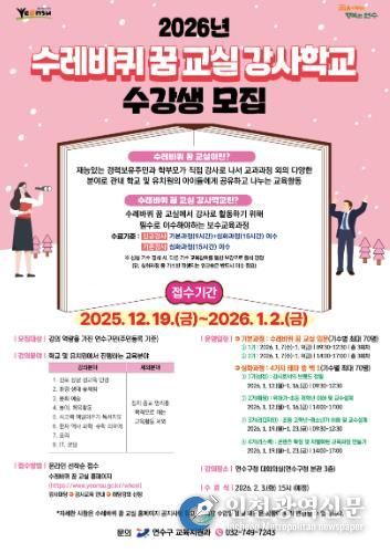 신청은 2025년 12월 19일부터 2026년 1월 2일까지 수레바퀴 꿈 교실 홈페이지를 통해 무료로 가능하다.